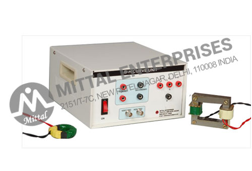 B-H Curve Unit INSTRUMENT It Consists of Electronic Circuity housed in a cabinet. One specimen of transformer stamping and another sample of ferrite ring is also supplied. This complete unit requires a C.R.O. to perform the experiment. The Unit enables one to trace the B-H loop (hysteresis) of a ferromagnetic specimen using a cathode ray oscilloscope. A measurement of the area of the loop leads to the evaluation of energy loss in the specimen The experimental arrangement is shown in Fig.1