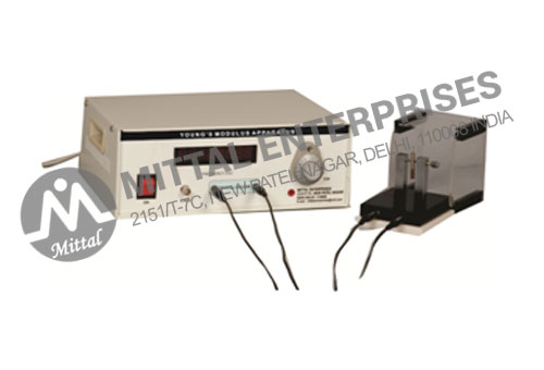 Young's Modulus Apparatus Non-Destructive Testing of Material is an important part of Engineering Education as it gives information without deformation in the shape and size of the material. One of the NDT techniques, Piezoelectric Technique is widely used for the measurement of composition dependent properties such as ultrasonic velocity, compressibility, elastic constant, Young’s modulus and Bulk modulus. Its suitability for metals, plastics, polymers and crystals etc makes it versatile tool for Engineering Physics, Material Science and Polymer Science. This low cost NDT apparatus is being used in several I.I.T.s/Universities/Engineering Colleges for laboratory experiments and Research work.